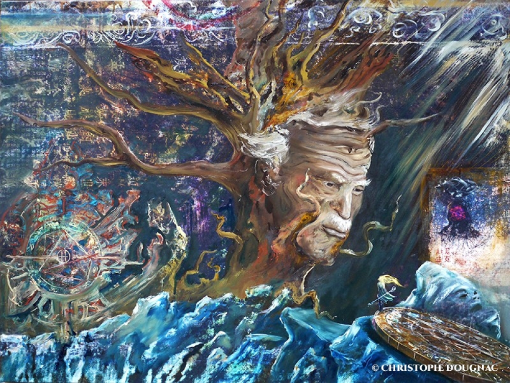 Tableau hommage à Carl Gustav Jung, réfléxion métapsychologique sur l'humain face au divin.